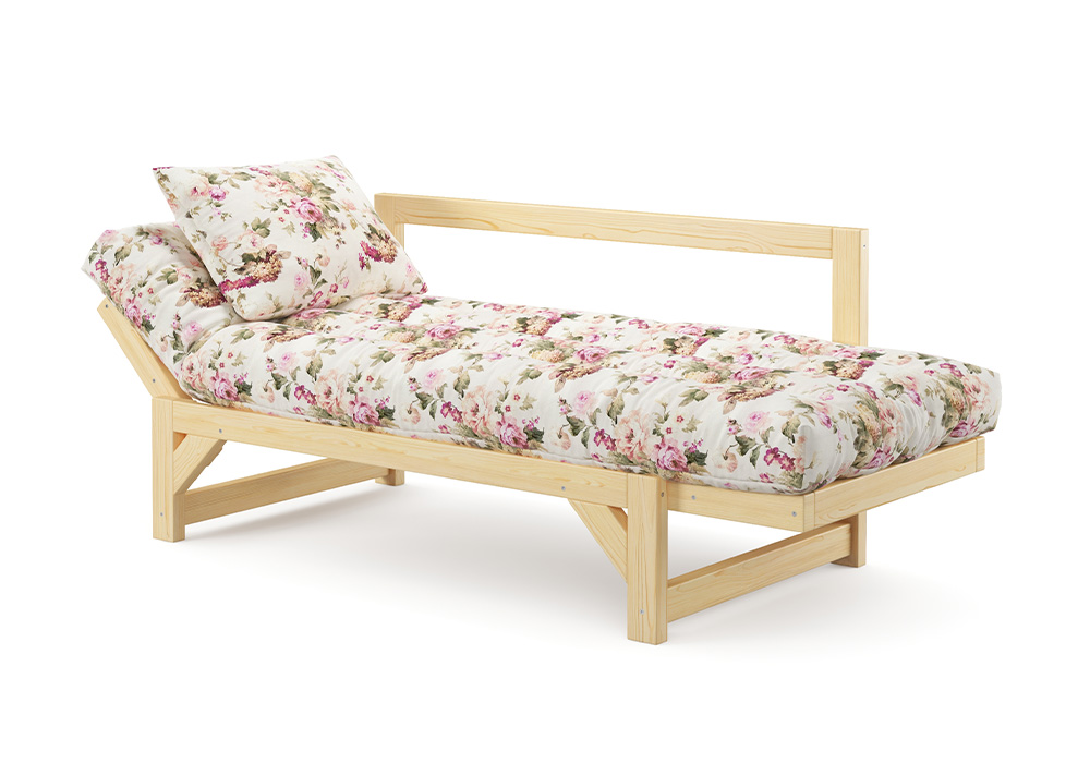 Максимальная нагрузка — 220кг. Ширина деревянной спинки 130 см. Приспинные подушки, представленные на фото, входят в комплект. Декоративные приобретаются отдельно. Диван продается без лакокрасочного покрытия, под самостоятельную покраску. Высота сиденья без матраса - 31 см, с матрасом 46 см.