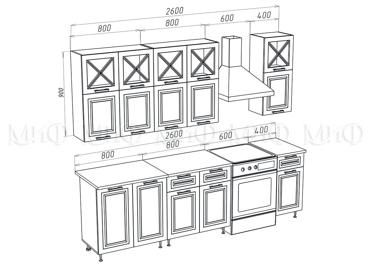 - Высота шкафов: Верхние 900 мм/Нижние 850 мм