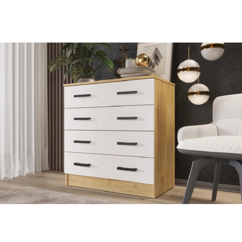 Лаконичное сочетание древесного оттенка с белым гладким создает привлекательный вид комода и позволяет вписать его в интерьер спальни, гостиной, прихожей или детской. Модуль поможет организовать место хранения вещей, белья, аксессуаров и игрушек. Особенности корпус ЛДСП дуб вотан фасад ЛДСП белый гладкий роликовые направляющие фурнитура в комплекте
