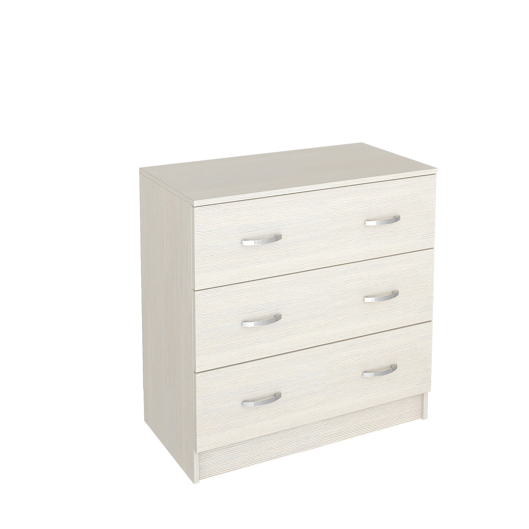 Комод подойдет даже для небольшой спальни, при этом три объемных ящика вместят белье и другие предметы гардероба