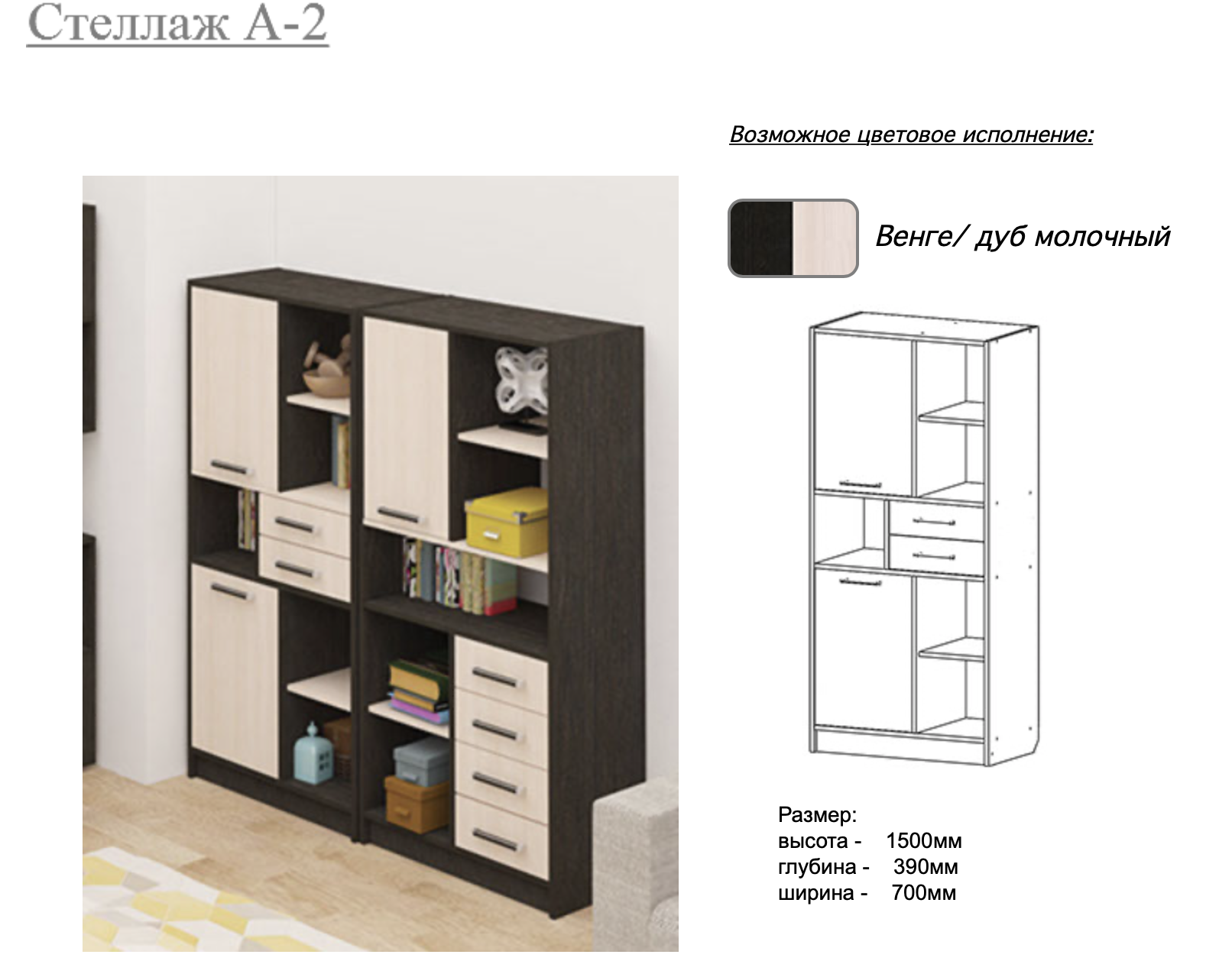 —Стеллаж А-2 Венге/Дуб Молочный Ш-700 мм x Г-390 мм х В-1500 мм