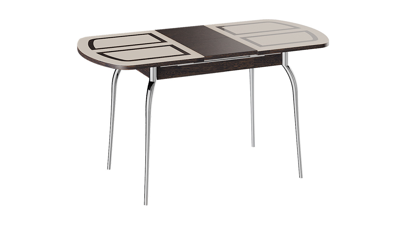 Стол Обеденный Раздвижной со Стеклом «Рио» (Венге/Стекло бежевое с рисунком)/Ш-700 x Д-1100/1450 мм x В-750 мм
