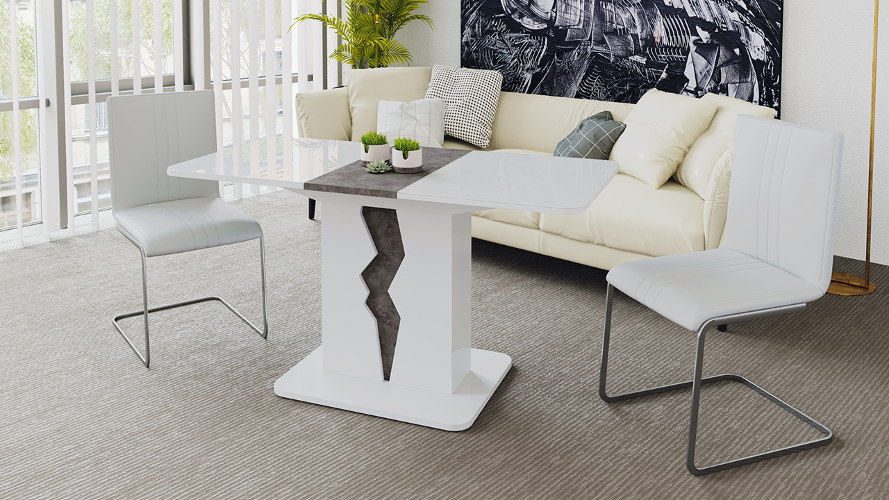 Стол Раздвижной «Шеффилд» исп. 1 Белый Глянец/Камень/ Д-1100/1417 x Ш- 701 мм x В-752 мм